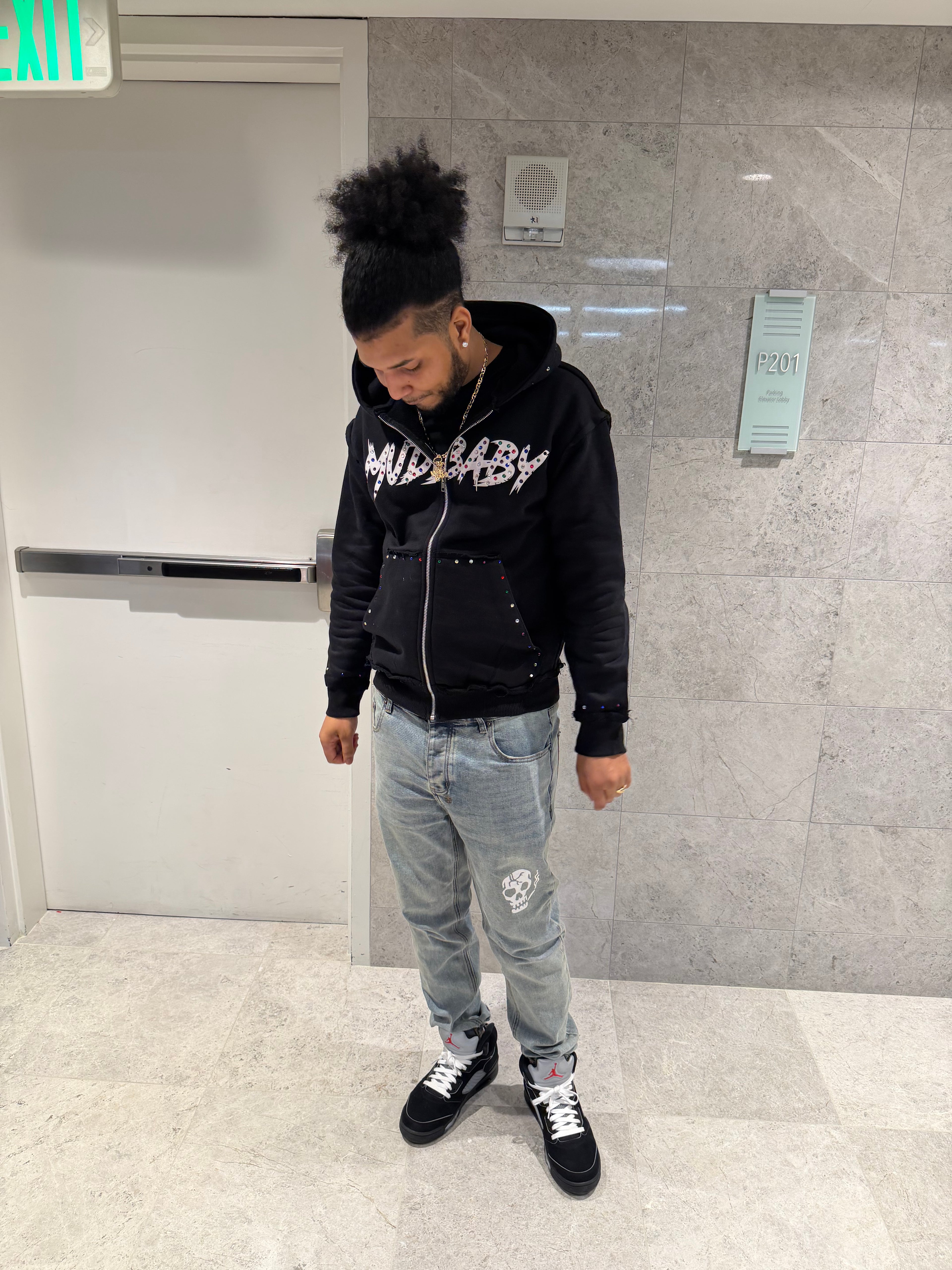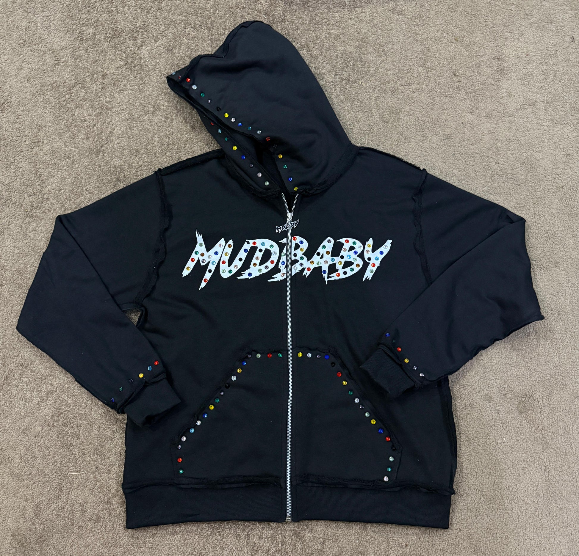 Black Mudbaby colorful rhinestones hoodie
